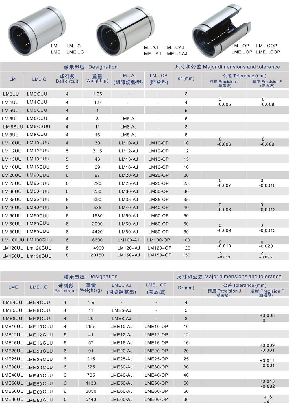 產品名稱:LM-UU/LME-UU/LM-CUU/LME-CUU